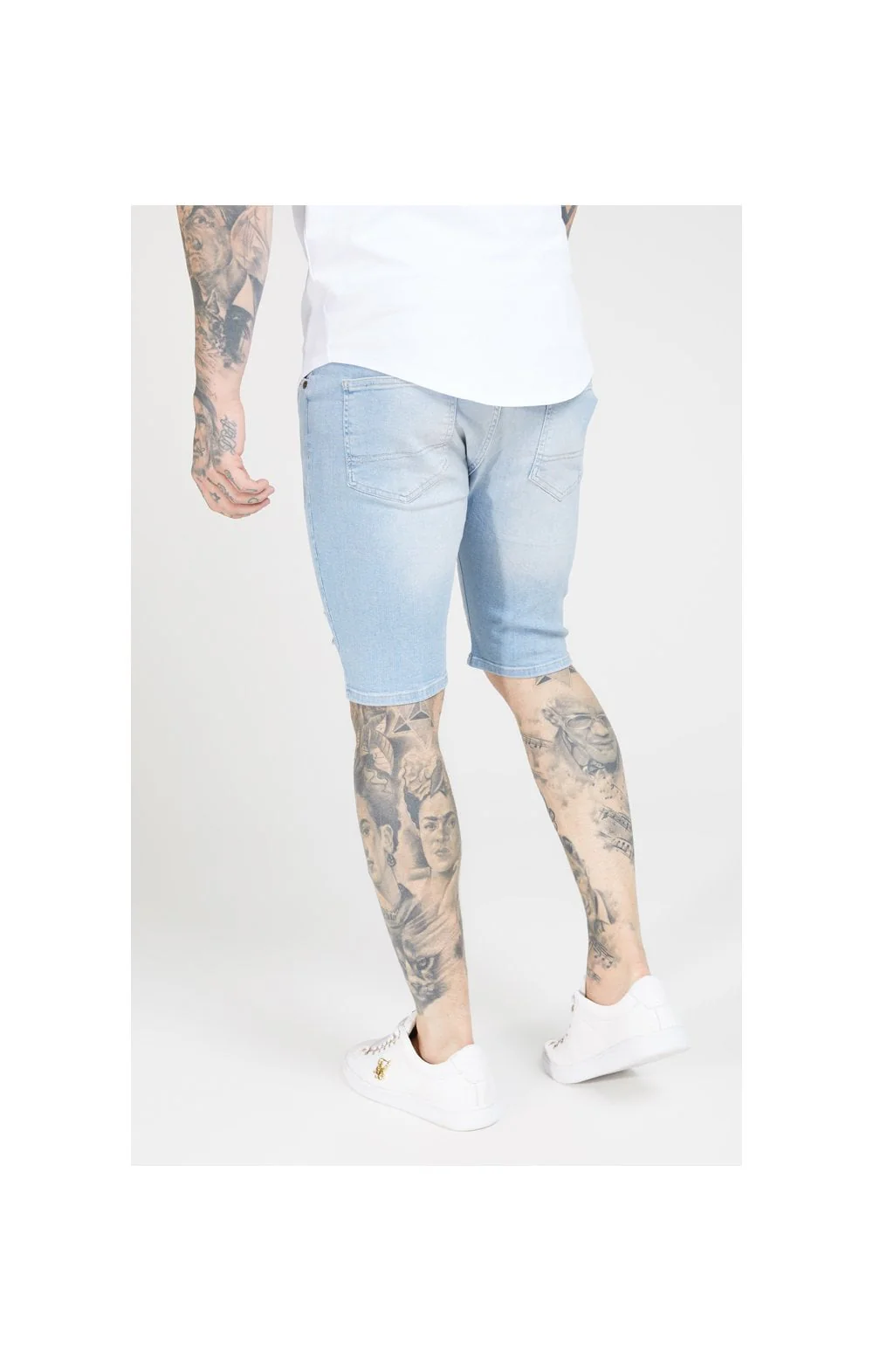 SikSilk Distressed Skinny Shorts – Light Wash