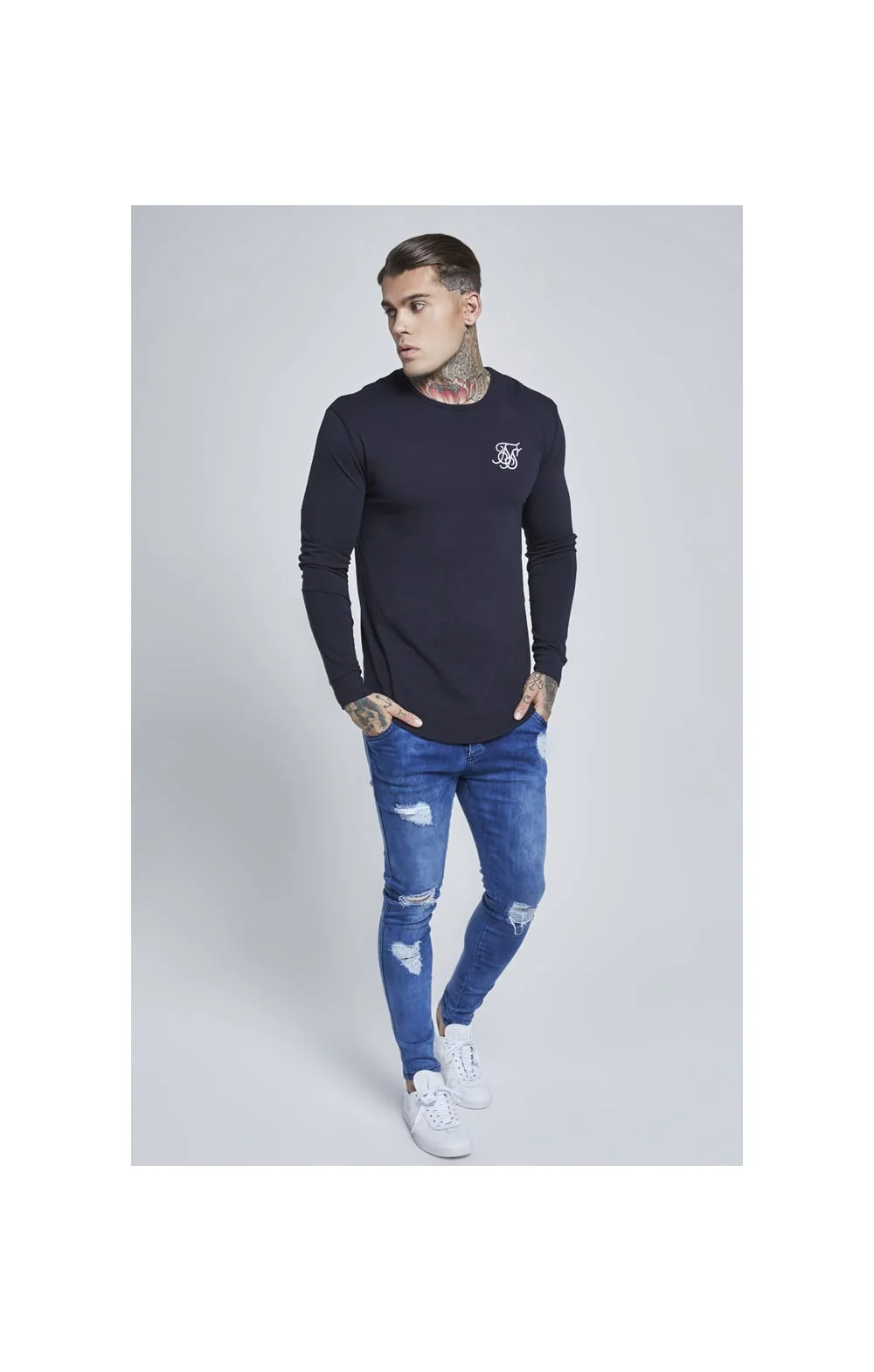 Navy Long Sleeve Muscle Fit T-Shirt